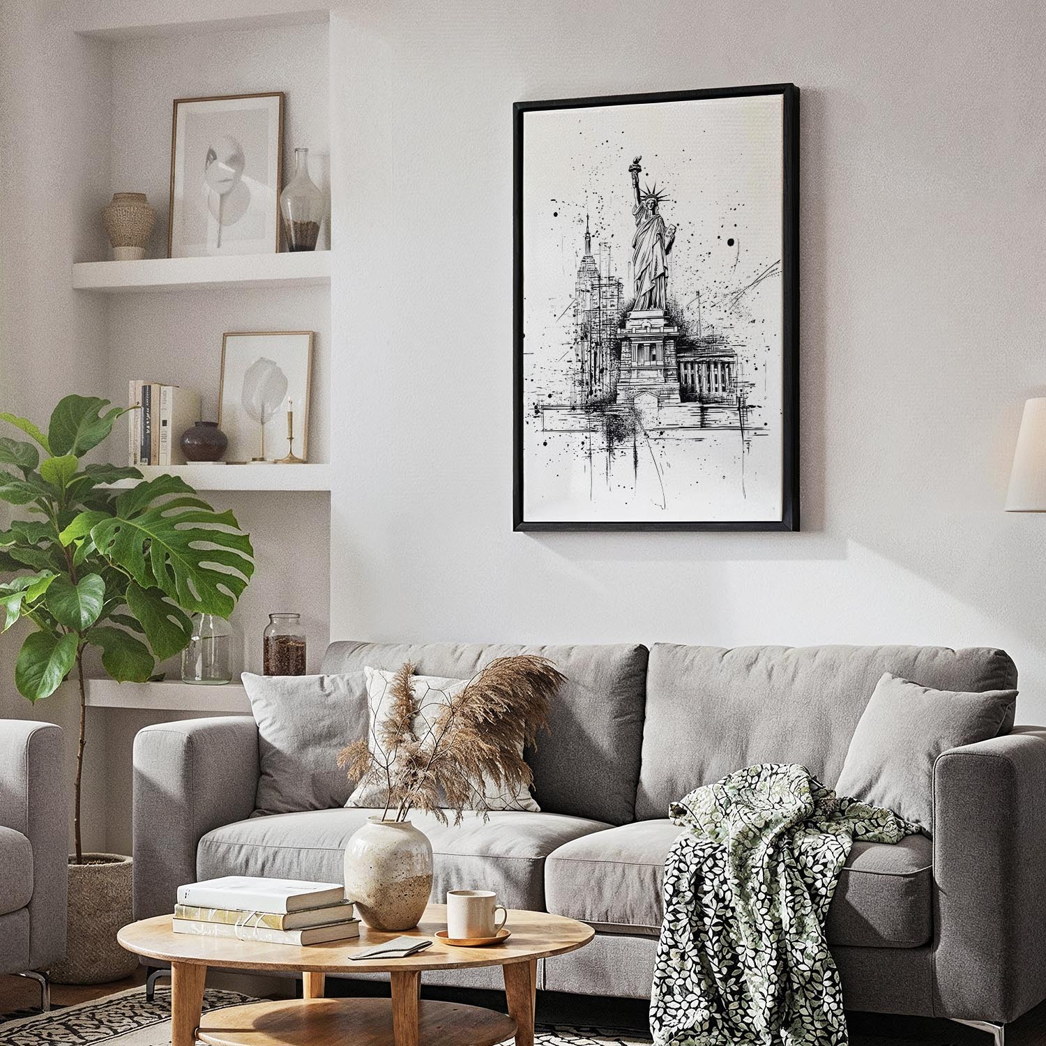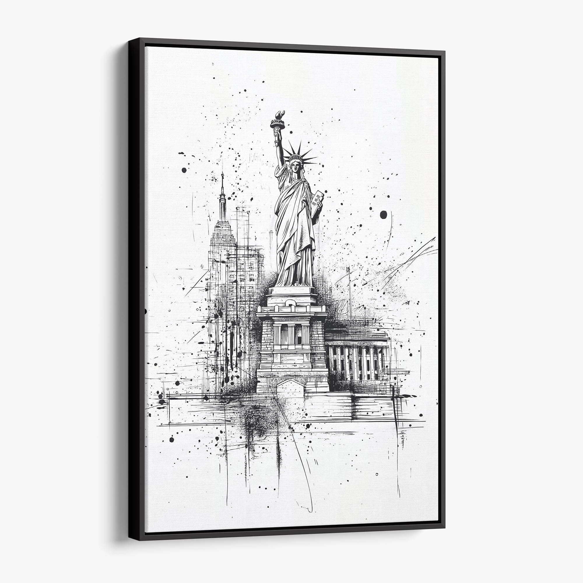 Statue of Liberty Pencil Drawing Canvas Print – New York City Artwork