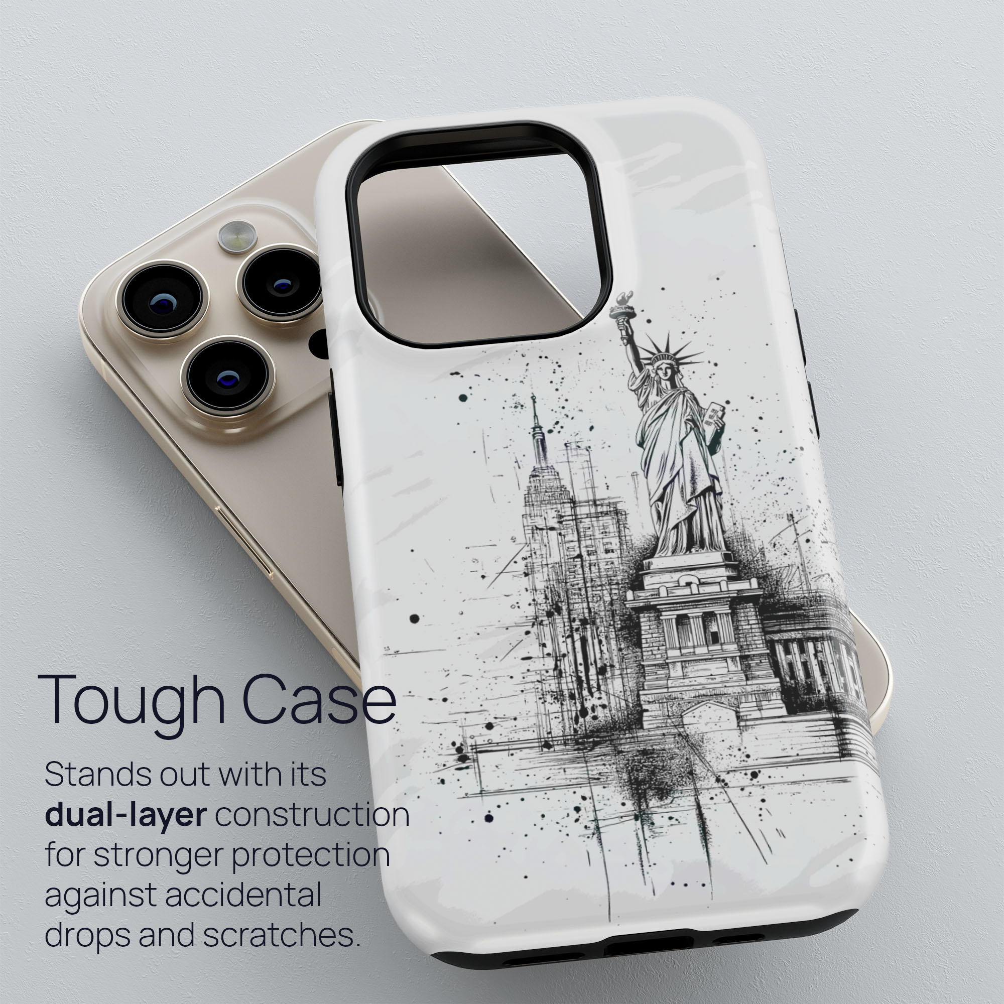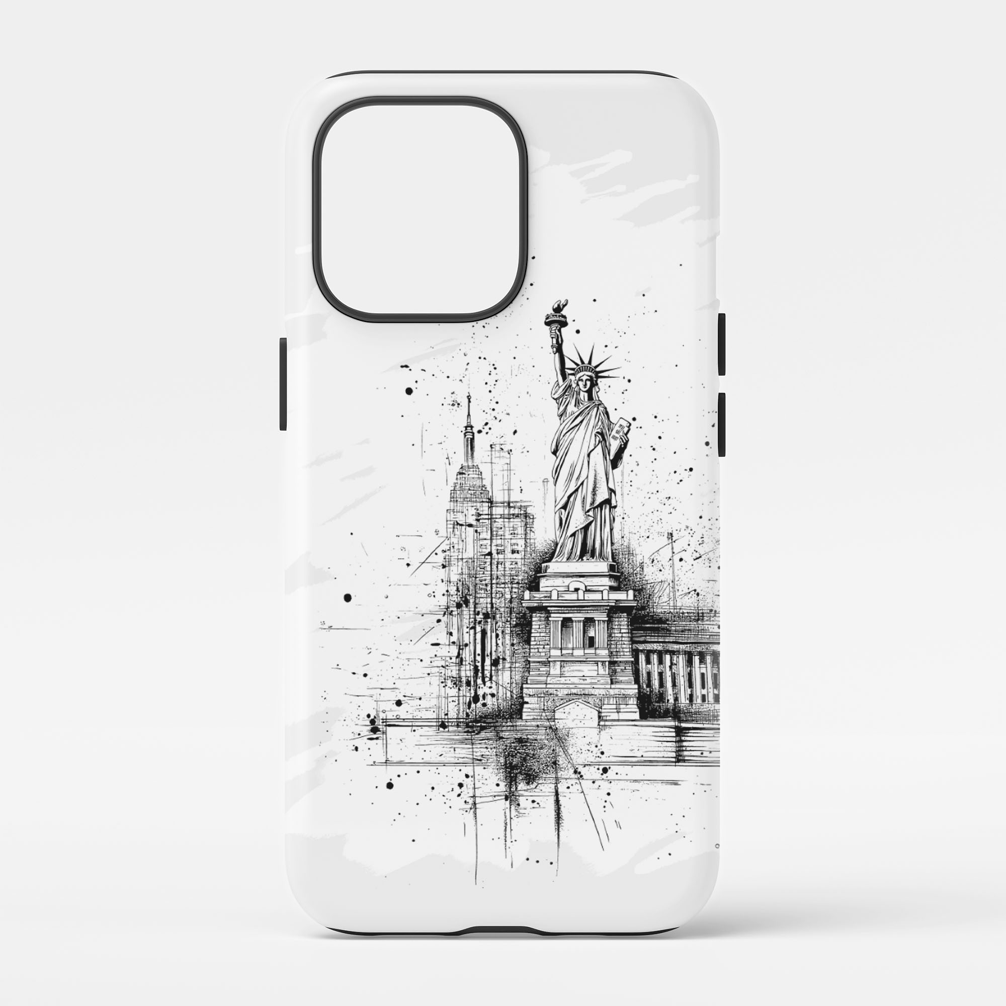 Statue of Liberty Phone Case – Iconic New York Landmark Pencil Drawing Art for City Enthusiasts