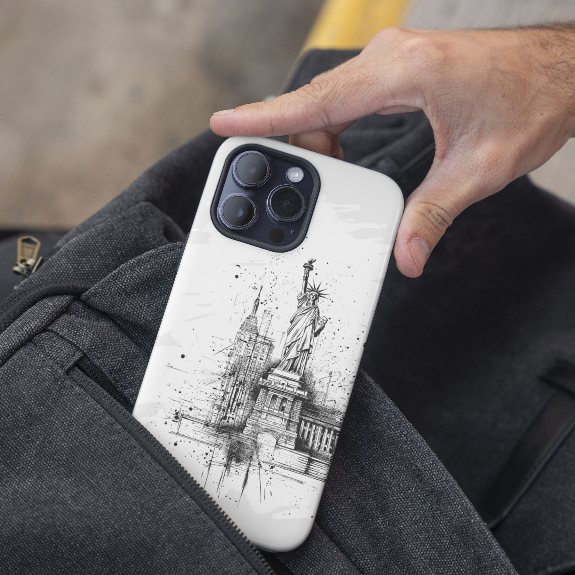 Celebrate New York with this Statue of Liberty phone case featuring a detailed pencil drawing. It’s slim and durable, making it perfect for everyday use while showcasing your love for this iconic landmark.
