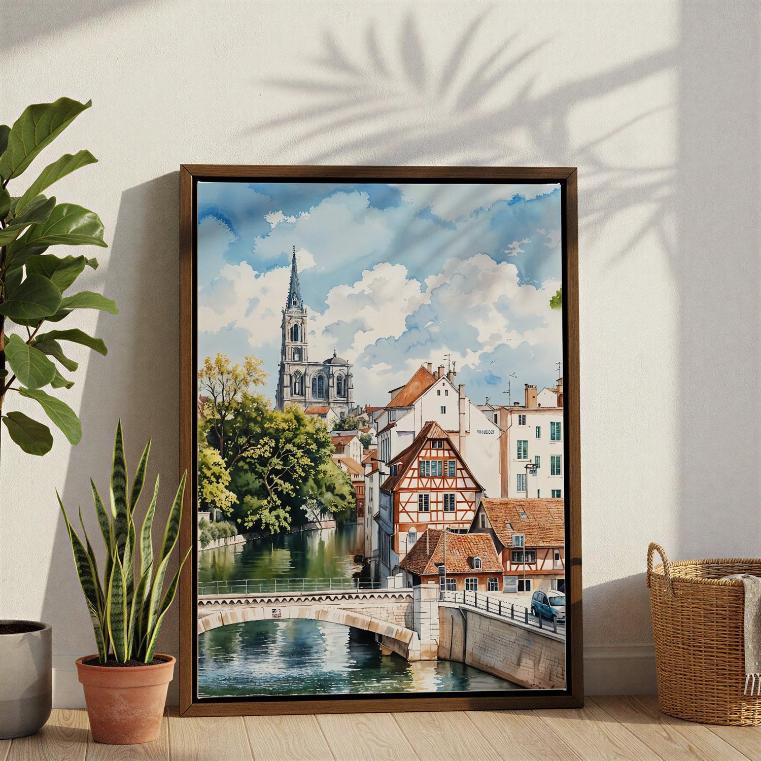 Strasbourg France Watercolor Canvas Print – Charming Landscape Wall Art