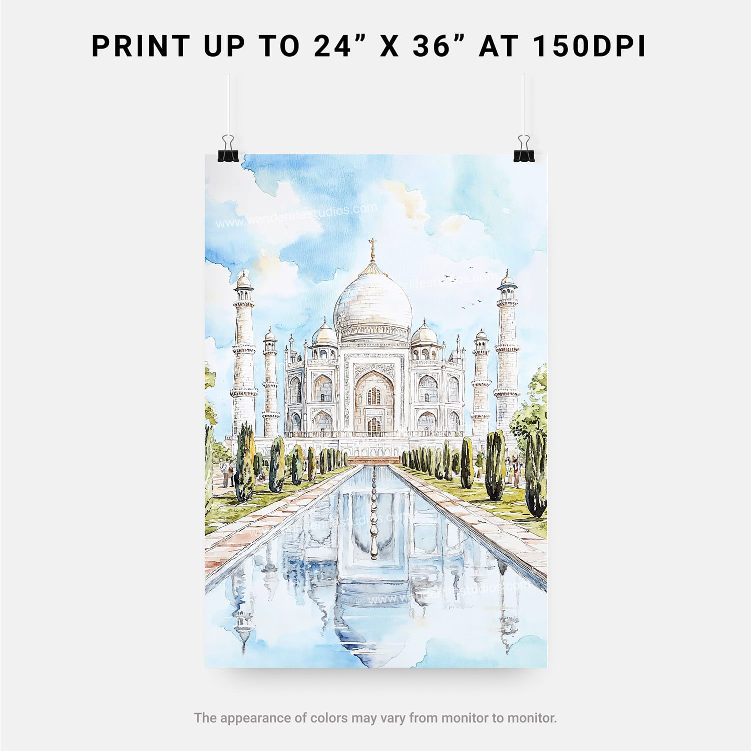 Taj Mahal Watercolor Art Print – Digital Download for Instant Home Decor