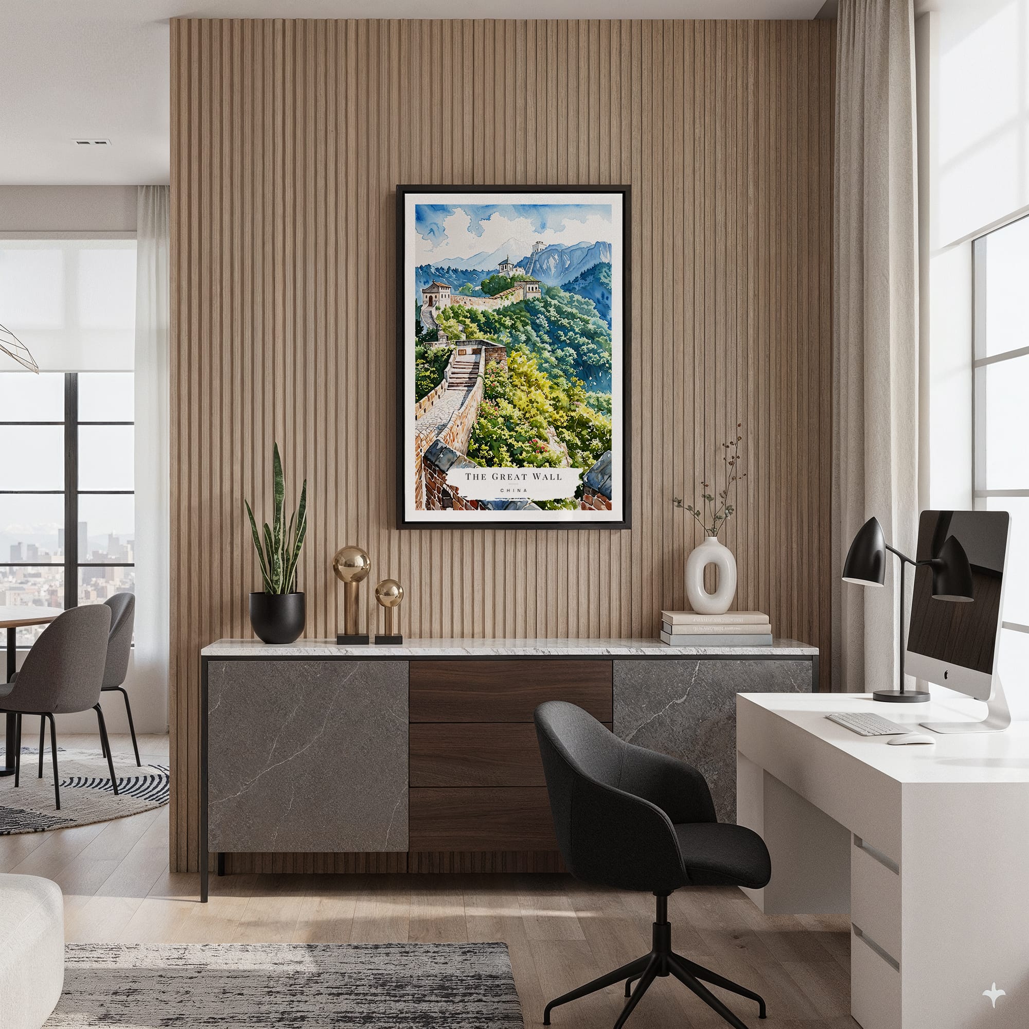 This artwork beautifully captures the iconic Great Wall, surrounded by vibrant greenery and a tranquil sky. The delicate hues of green and blue create a soothing ambiance in any setting, ideal for living rooms, offices, or personal spaces. Printed on high-quality canvas using fade-resistant inks, it arrives ready to hang with a matte finish that preserves color clarity. This piece makes for a meaningful addition to your decor or a memorable gift for lovers of history and travel.