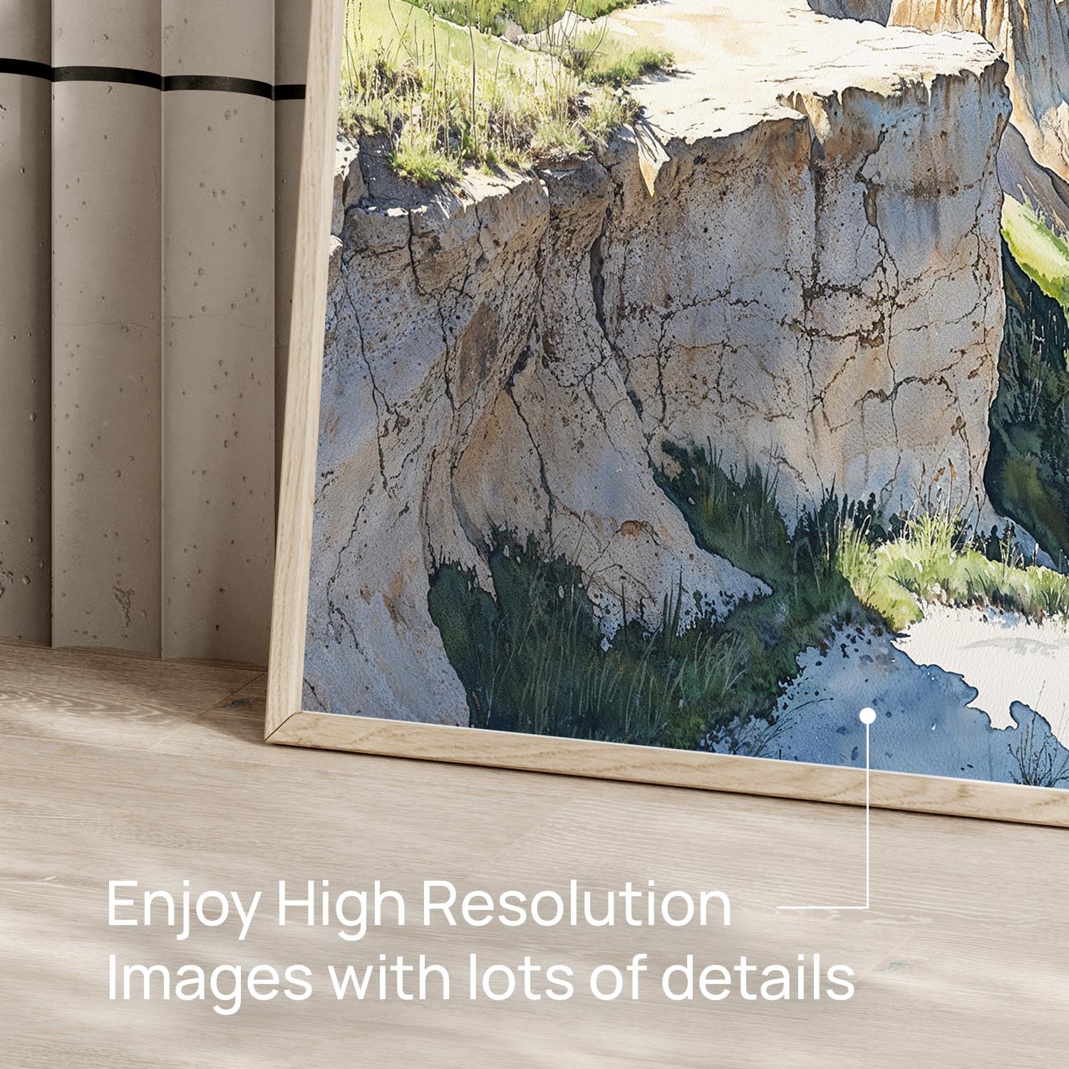 Invite the beauty of Theodore Roosevelt National Park into your home with this watercolor digital download wall art. Instantly access and print this serene landscape to enhance any room with its natural vibe.