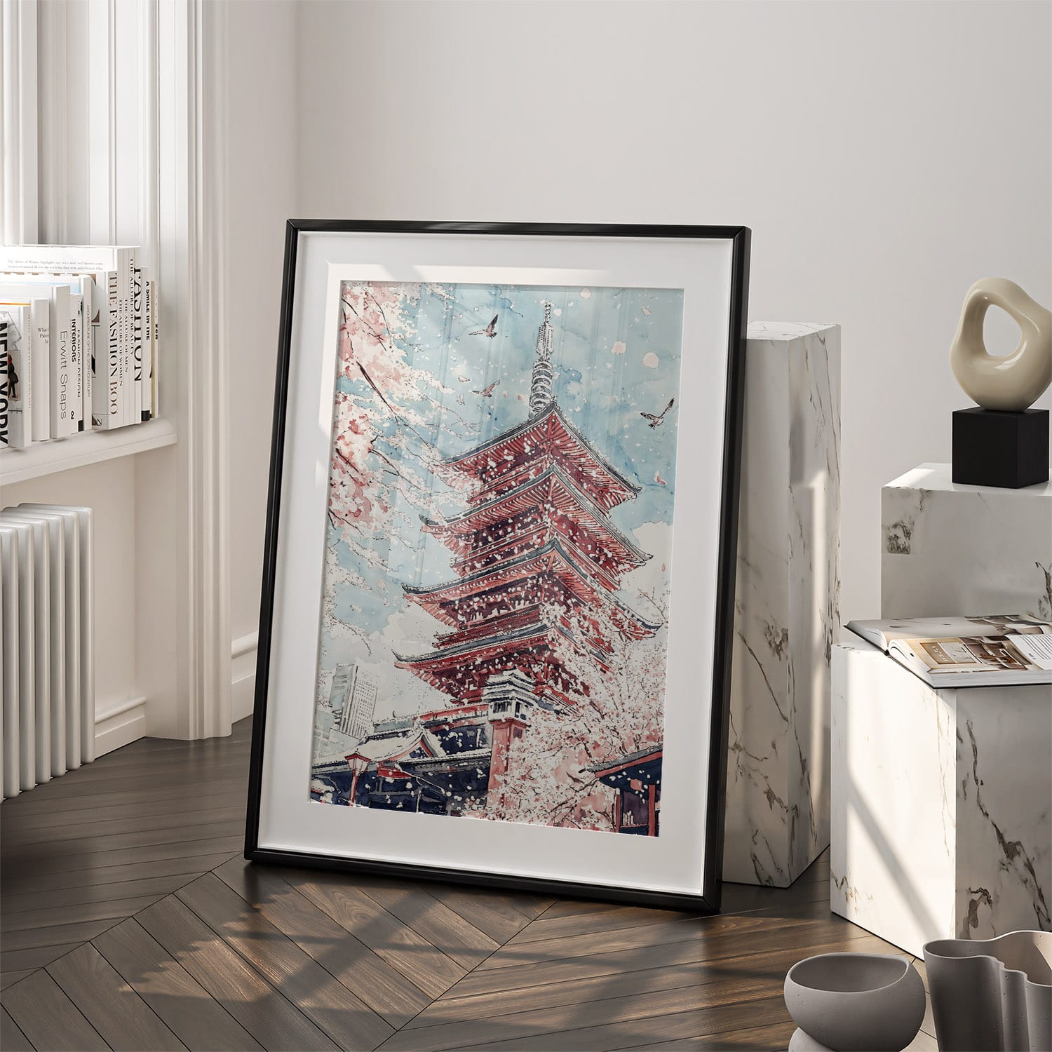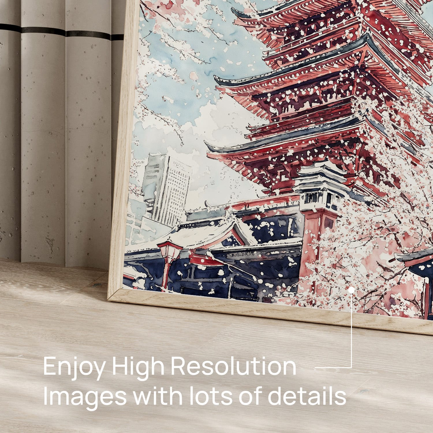 This Tokyo Sakura digital download wall art captures a serene cherry blossom scene around a temple. Simple to print and display, it offers an instant touch of tranquility to any space.