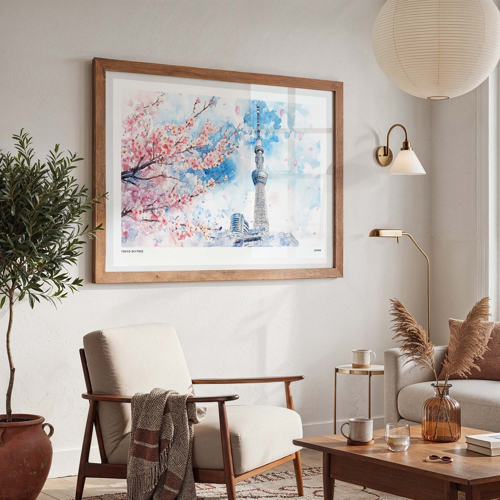 This enchanting artwork highlights the iconic Tokyo Skytree set against a backdrop of blooming cherry blossoms and a soft blue sky. It brings warmth and elegance to any space, evoking memories of springtime in Japan. Delivered as a high-resolution JPG file, this piece allows for easy printing at home or via a local print shop. Perfect for living rooms, bedrooms, or office spaces, it provides a delightful touch of nature and culture that you can enjoy instantly.