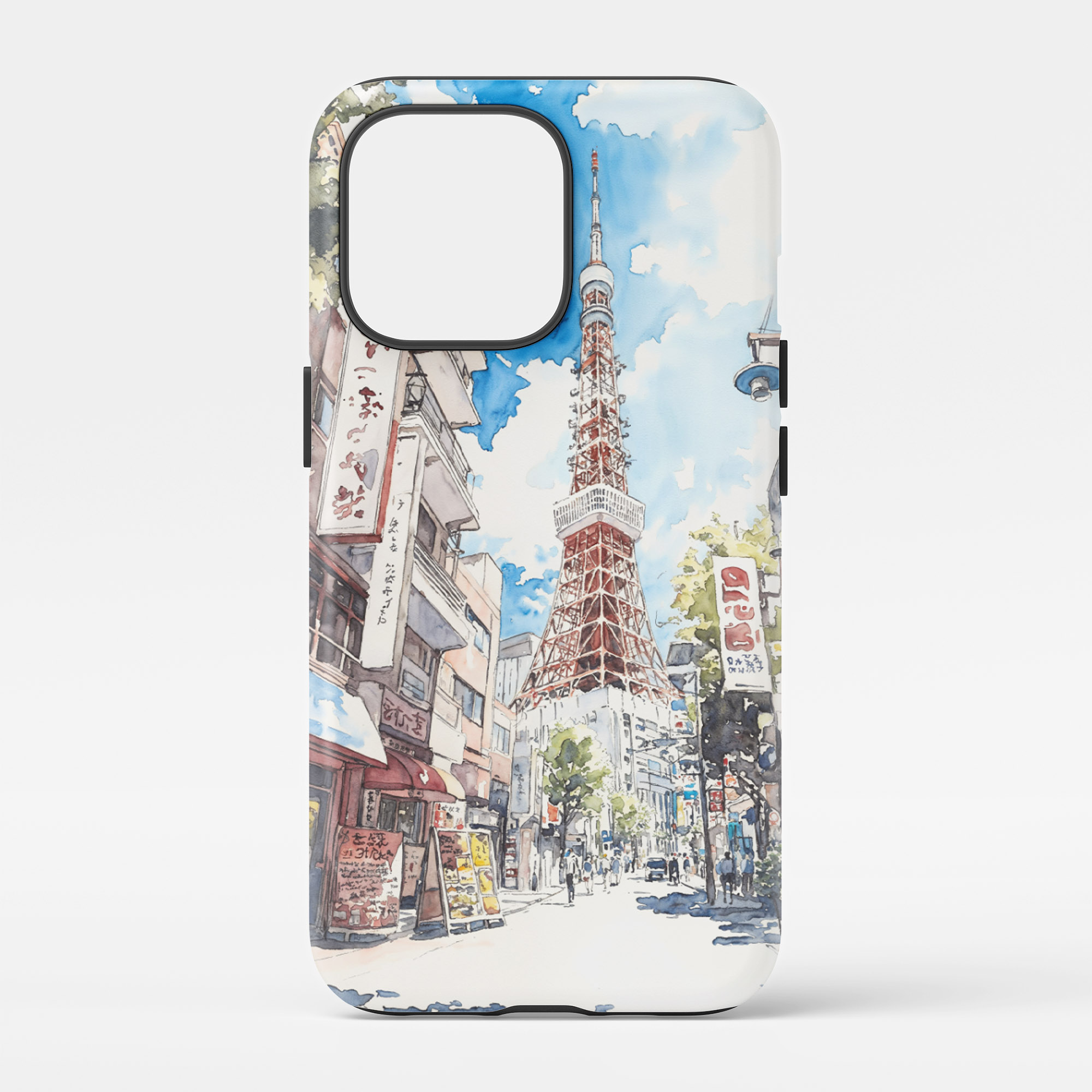 Tokyo Tower Phone Case – Urban Watercolor Art Phone Cover for City Lovers
