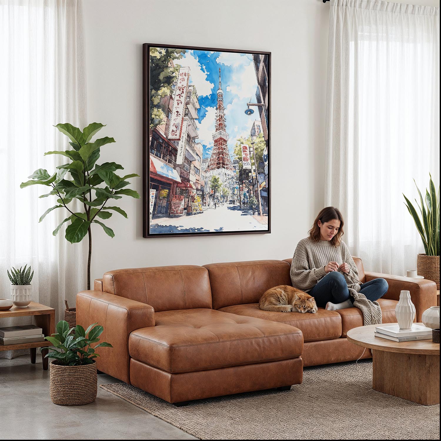 Tokyo Tower Watercolor Canvas Print – Urban Cityscape Wall Art