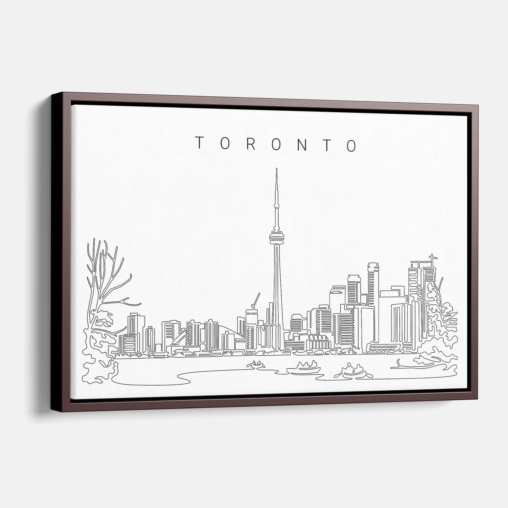 Minimal Toronto skyline canvas wall art with unique single line art of the waterfront cityscape. Coming in black and white, this special Toronto Canada canvas art print is a wonderful wall decor for minimalist homes and makes a special home decor gift for friends or family.