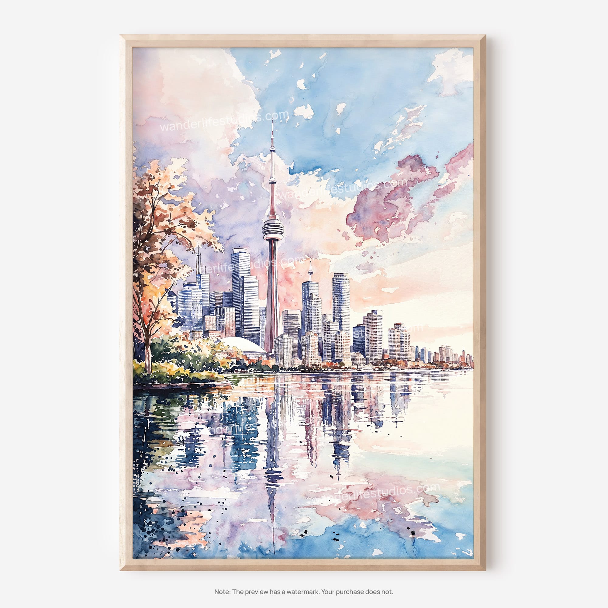 Toronto Watercolor Art Print – Cityscape Digital Download Wall Art