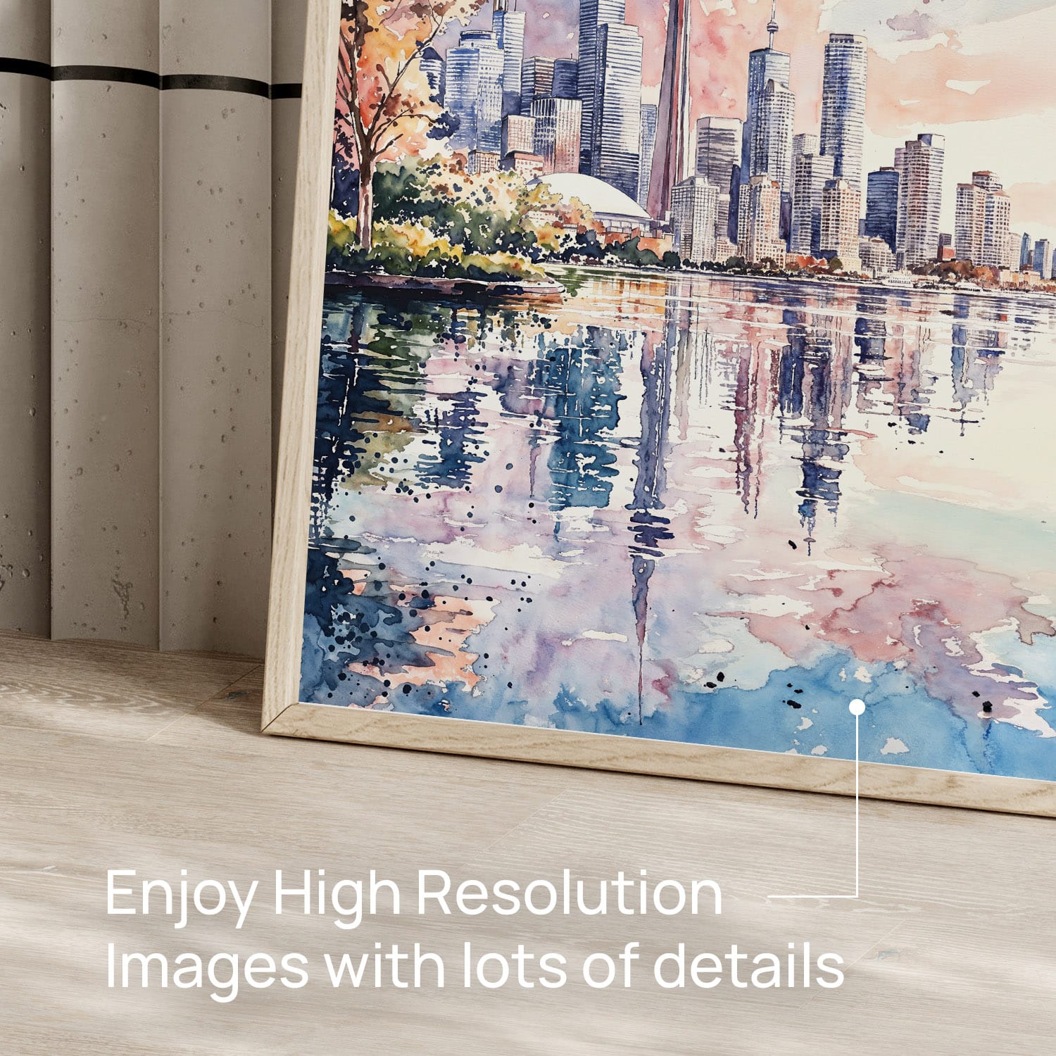 Capture the essence of Toronto with this vibrant digital download wall art. Featuring soft watercolor tones and a stunning city skyline, it’s easy to print and display in your home or office.