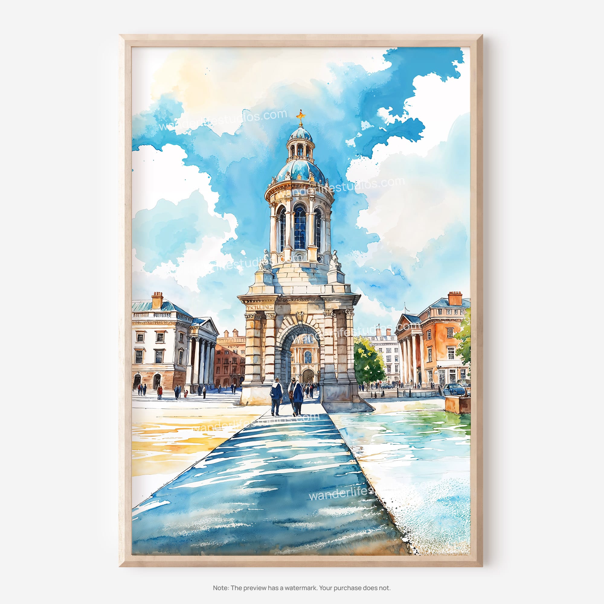 This artwork showcases the iconic entrance of Trinity College, bringing a slice of Dublin into your home. The soft watercolor style and lively details create a warm atmosphere, perfect for evoking fond travel memories. Delivered as a high-resolution digital file, you can print it easily at home or through a local print shop. This piece is suitable for various spaces like living rooms, offices, or bedrooms, offering a personal touch to your decor. Enjoy instant access and the flexibility to refresh your walls effortlessly.
