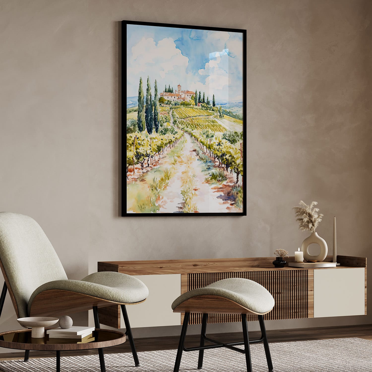 This artwork captures the beautiful rolling hills and vineyards of Tuscany in gentle watercolor hues. It brings a warm, inviting atmosphere to any room, making it perfect for living spaces or home offices. Delivered as a high-resolution digital file, it’s available in various sizes and easy to print at home or with a local printer. Enjoy instant access, allowing you to refresh your decor with just the click of a button.