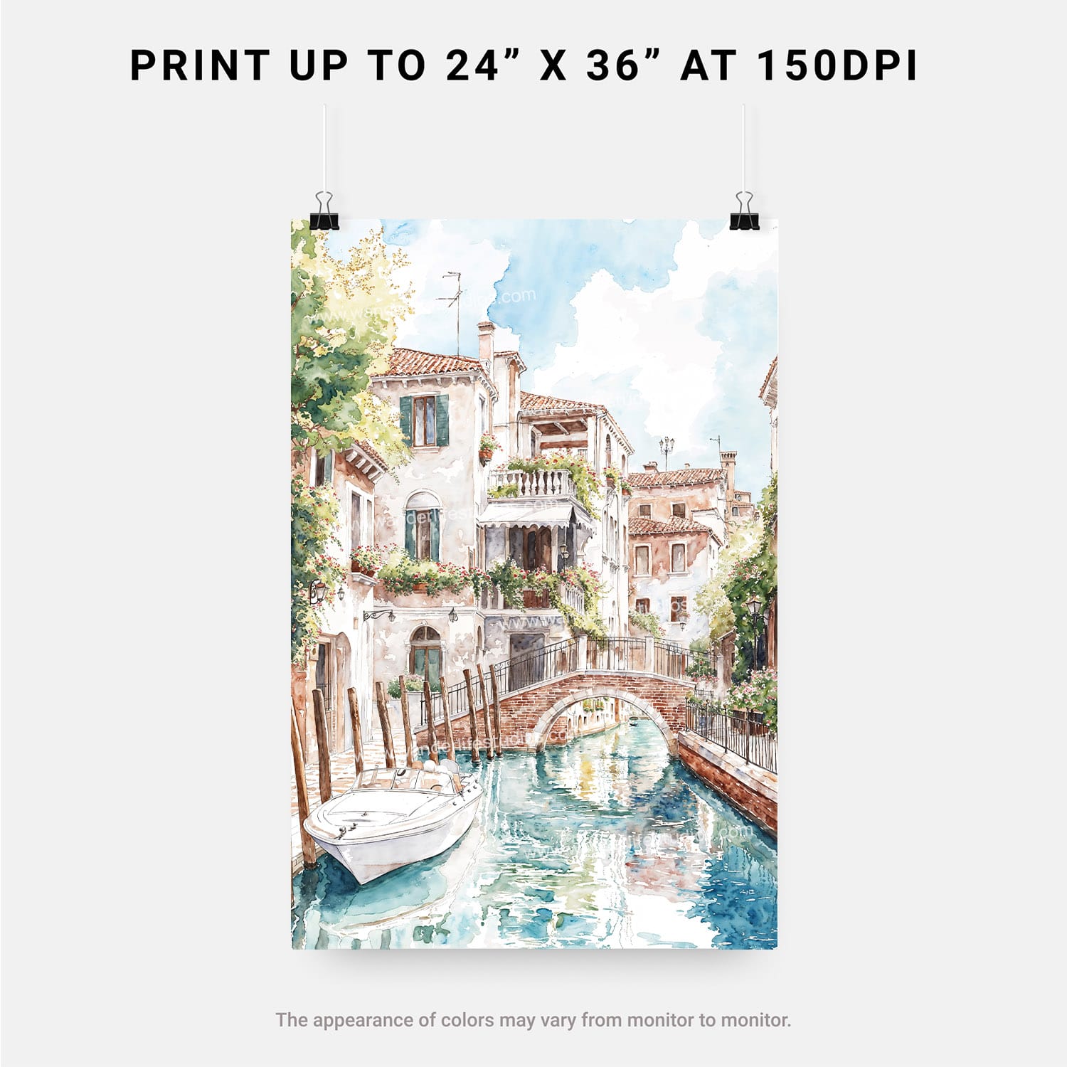 Transform your space with this Venice Canal watercolor digital download wall art. Featuring tranquil waterways and charming architecture, it’s an easy way to add a splash of elegance to your home. Print at home or your local shop for immediate enjoyment.