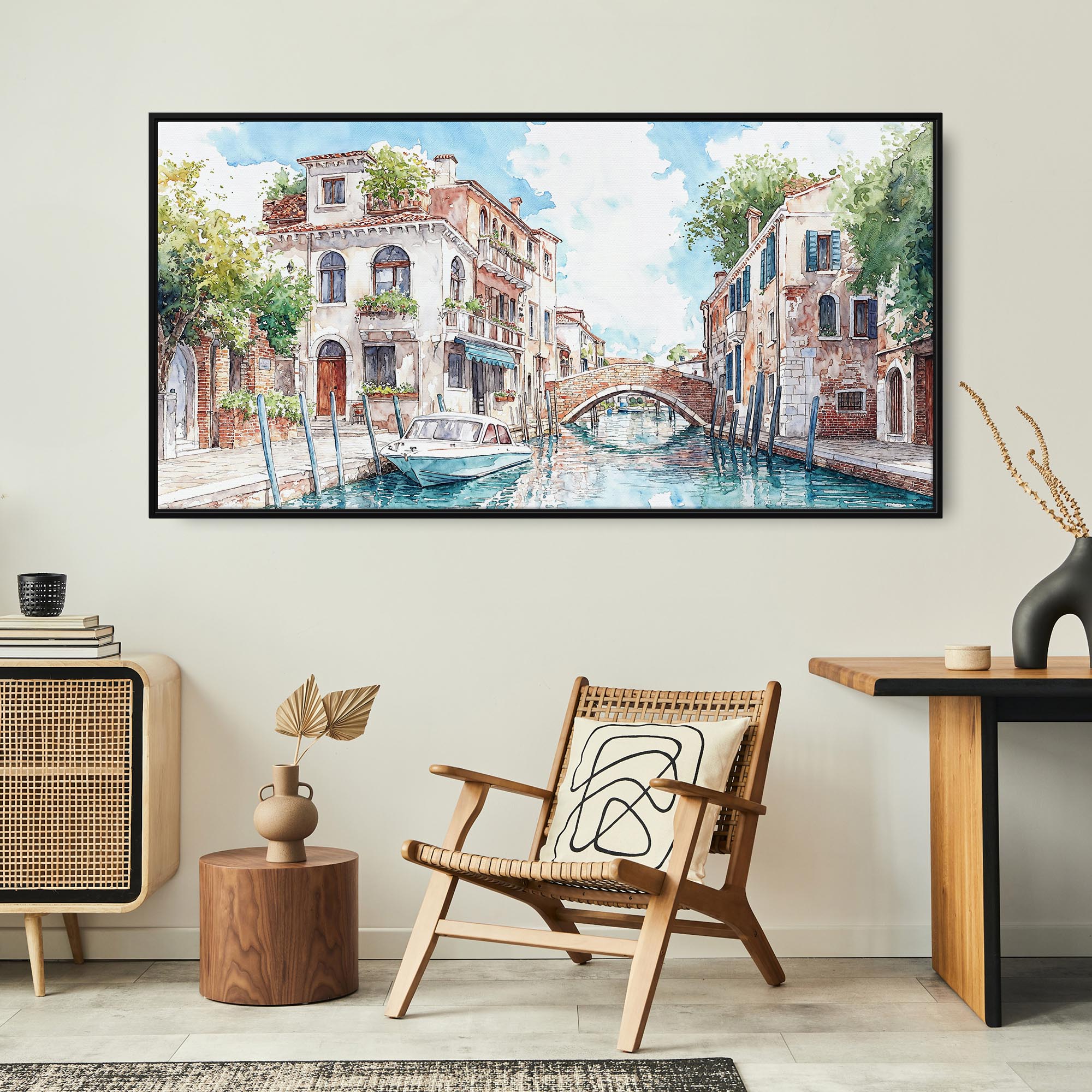 Venice Canal Watercolor Panorama Canvas Print | Italian Cityscape Wall Art