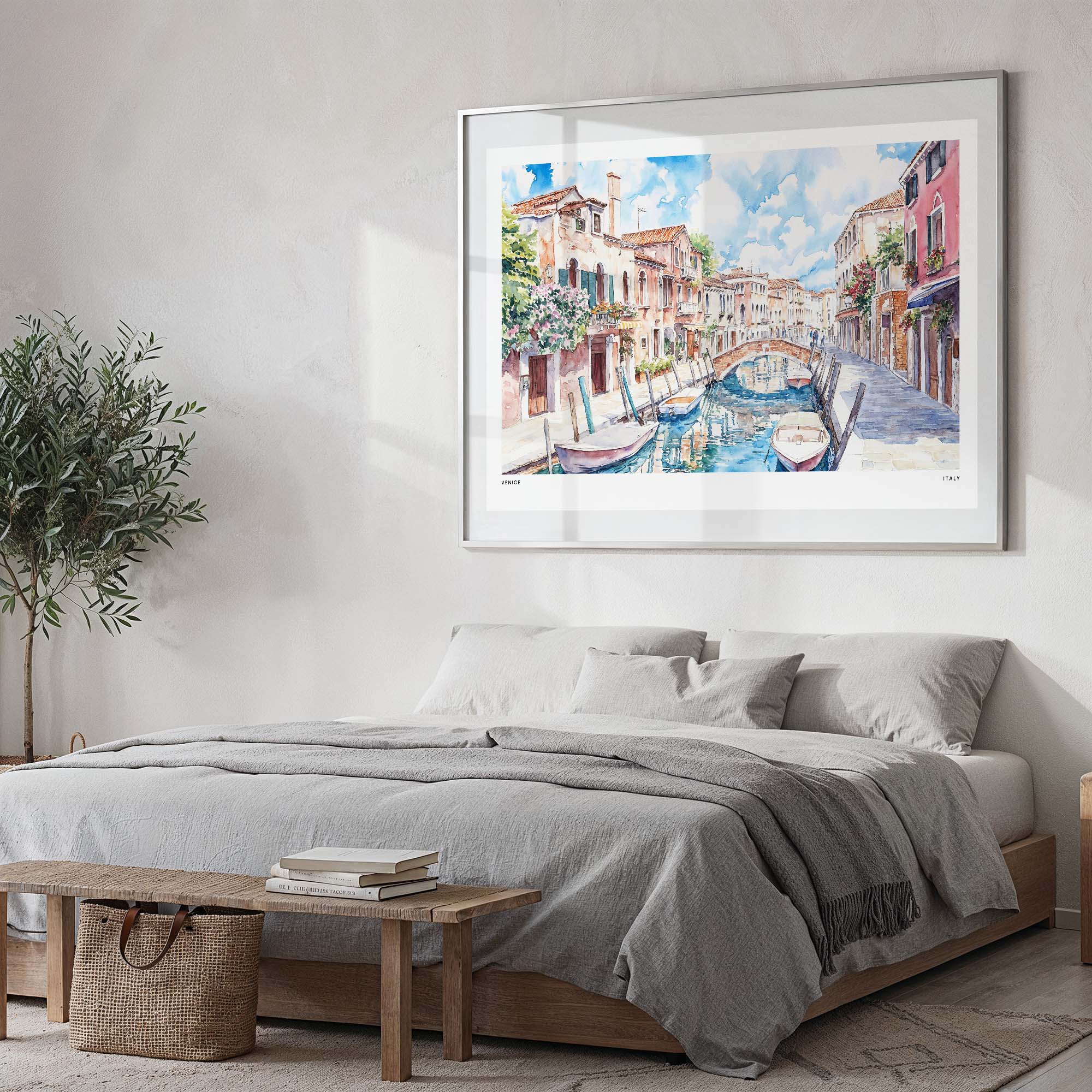 Transform your space with this lovely watercolor print of the Venice canals. Enjoy instant access to a high-quality digital download, making it easy to print and display your love for this iconic city.