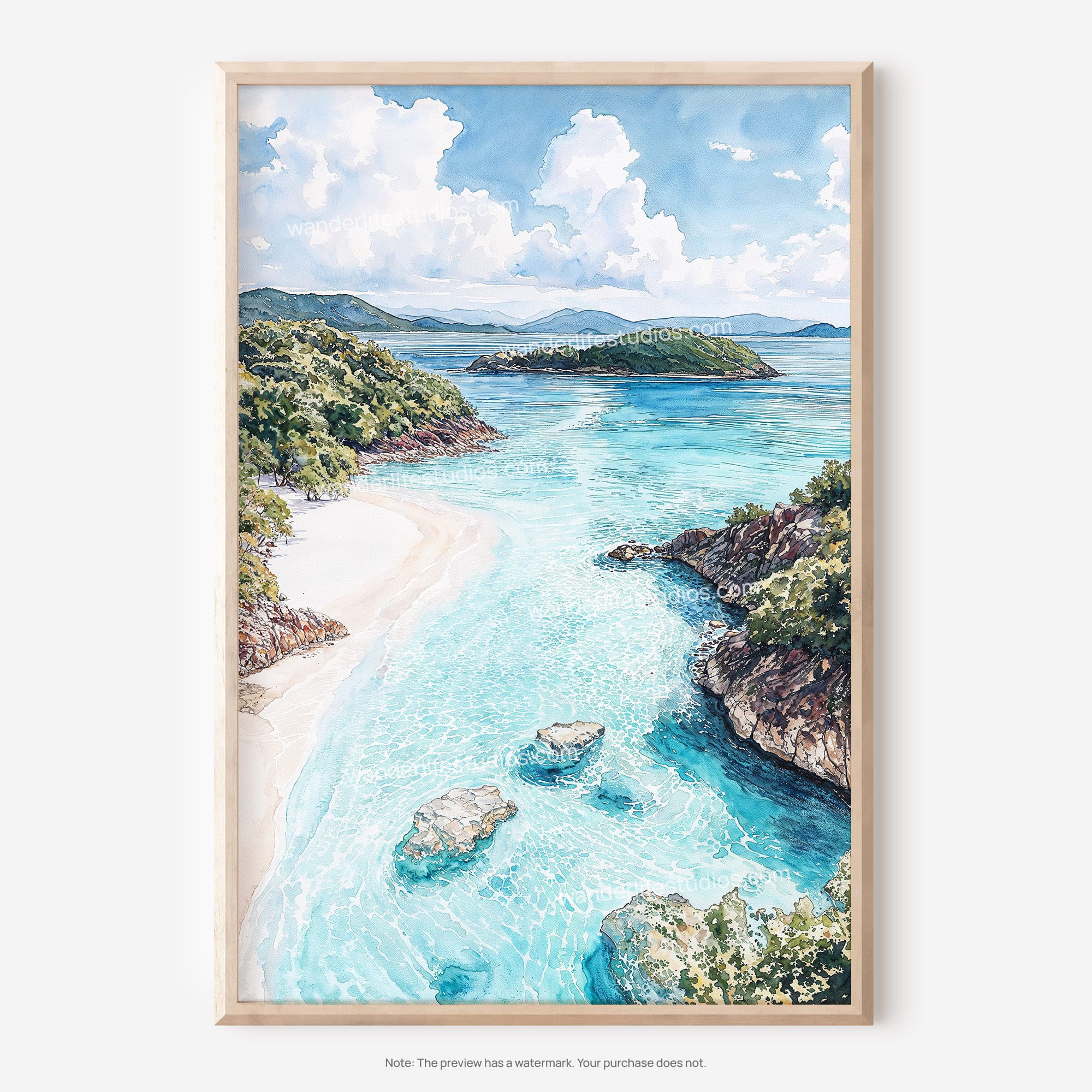 Virgin Islands National Park Watercolor Art – Digital Download Wall Art