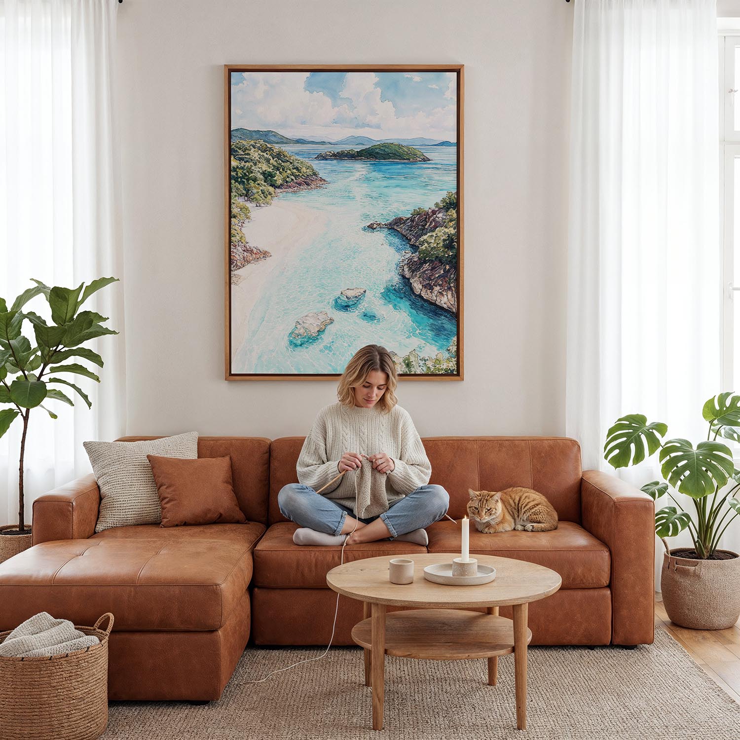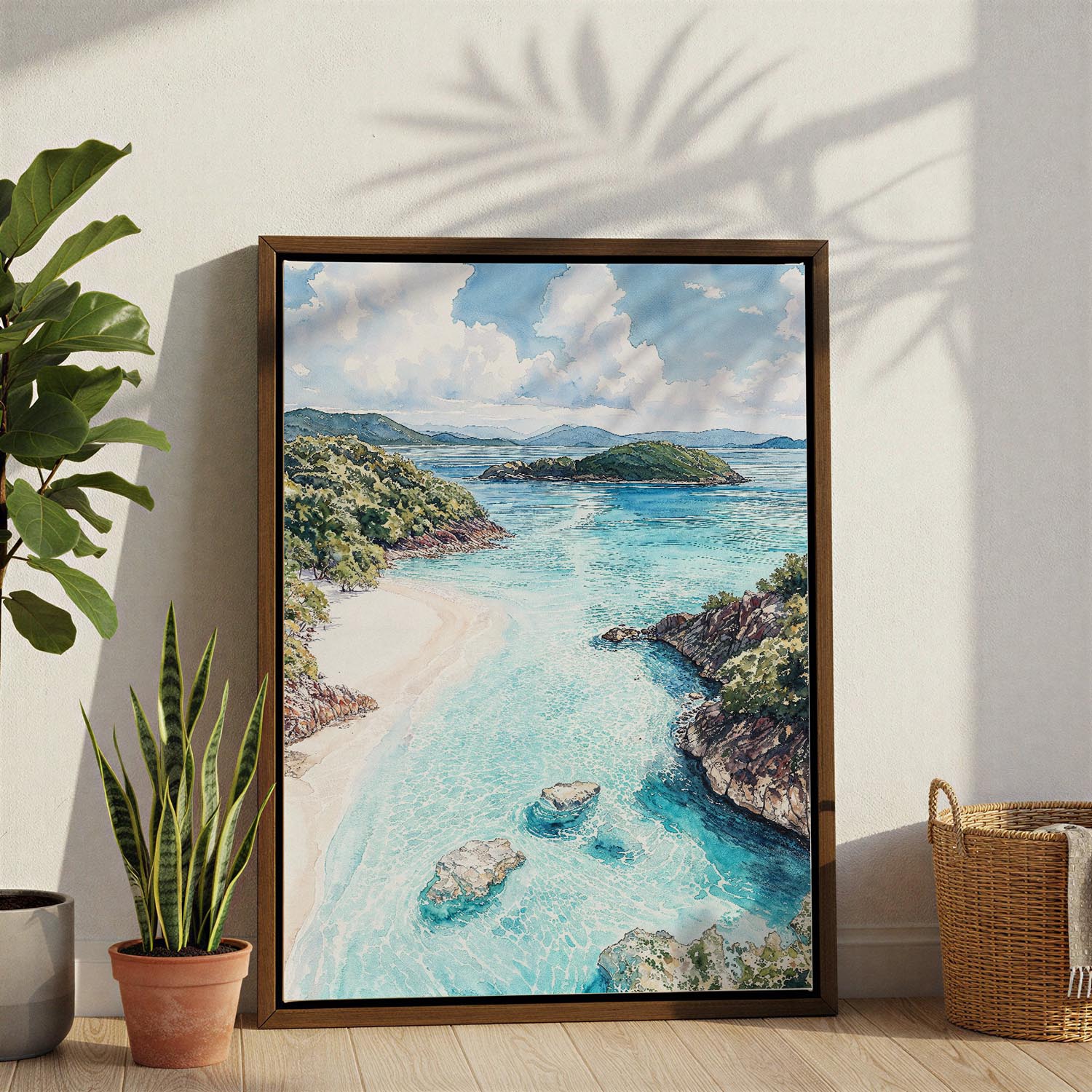 Virgin Islands National Park Watercolor Canvas Print – Coastal Landscape Wall Art