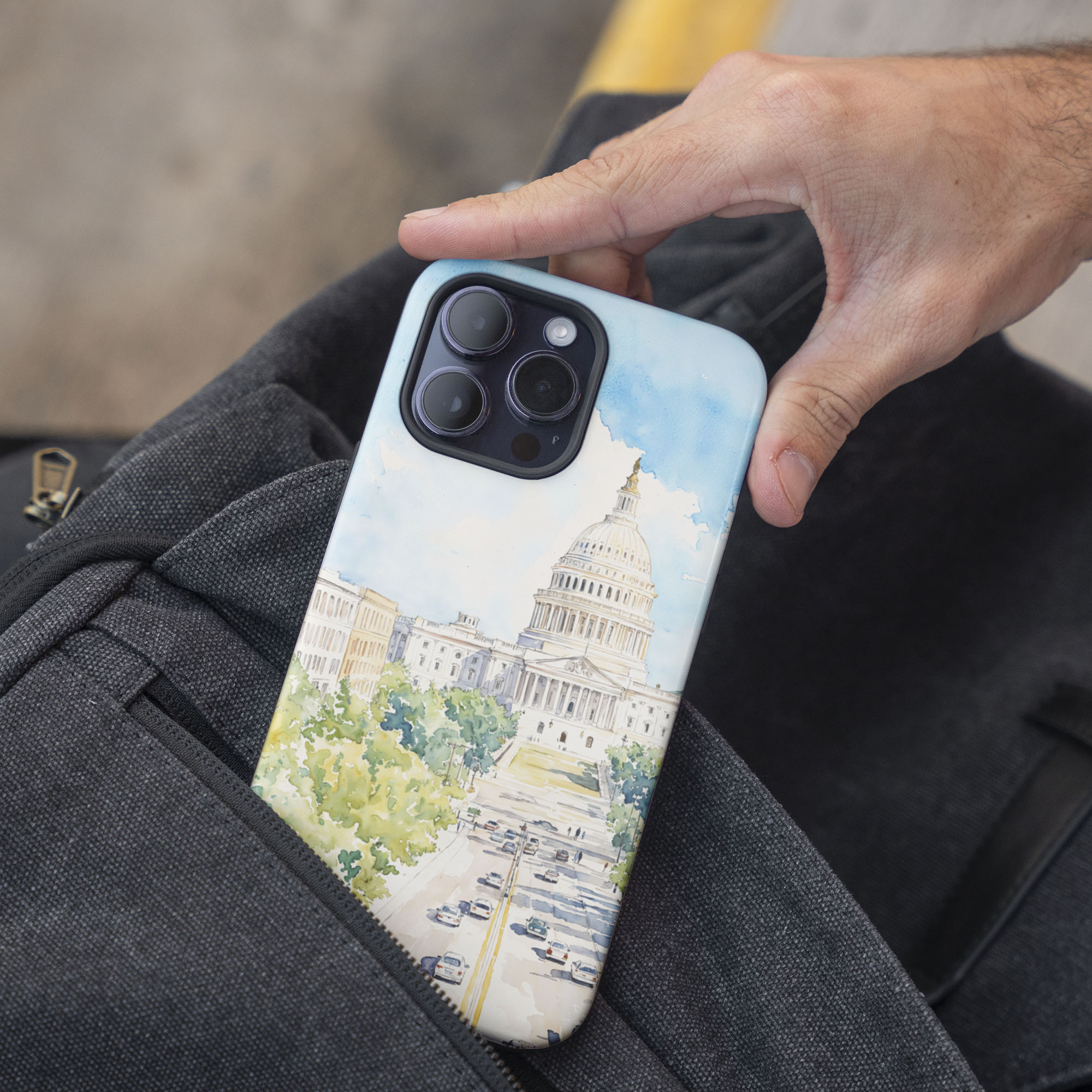 Washington DC Watercolor Art Phone Case – Stylish Cityscape Cover for History and Politics Enthusiasts