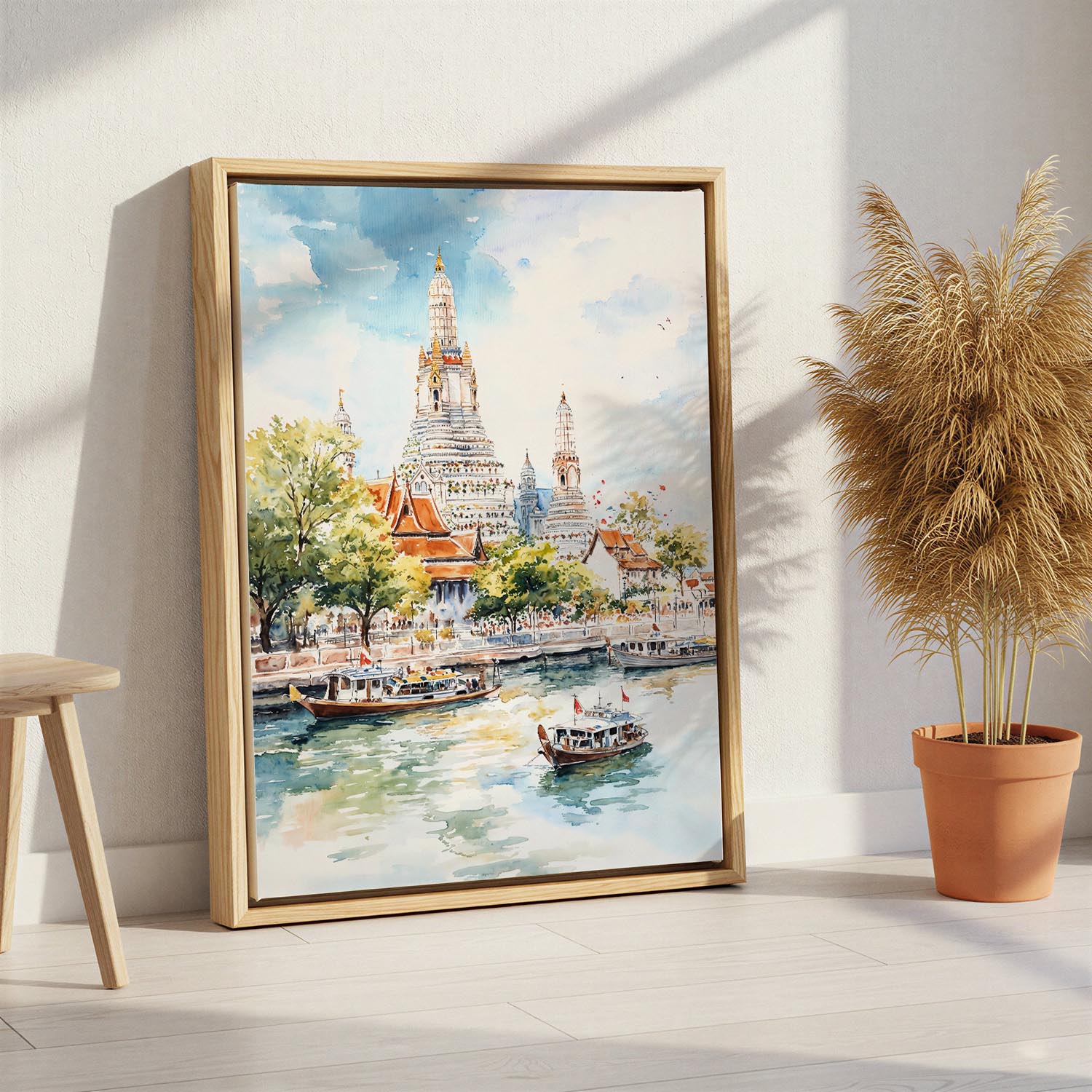 Wat Arun Temple Canvas Print – Watercolor Cityscape Wall Art