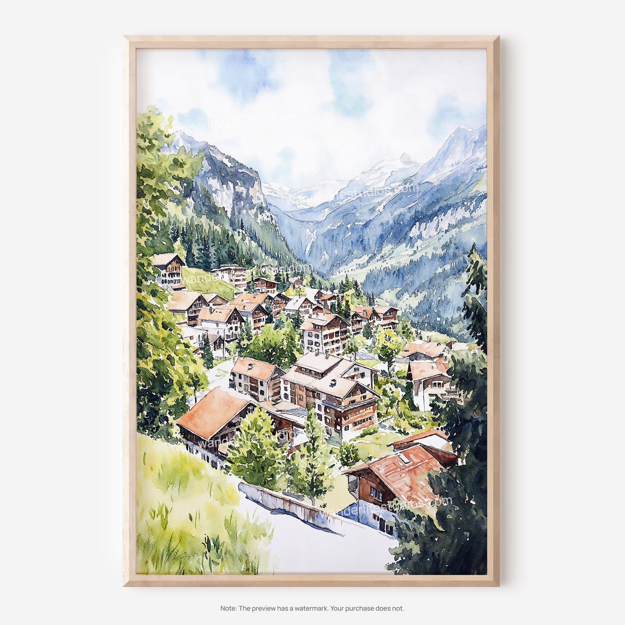 Wengen Switzerland Watercolor Digital Download Wall Art