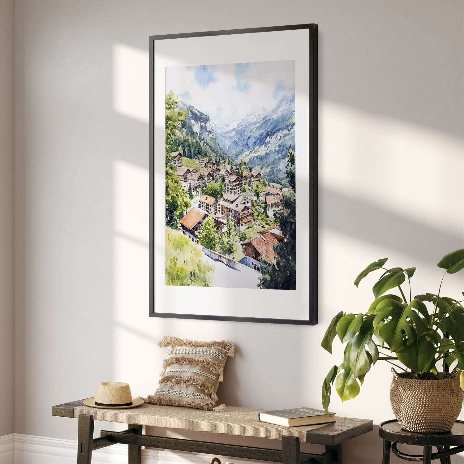 Wengen Switzerland Watercolor Art – Digital Download Landscape Wall Art