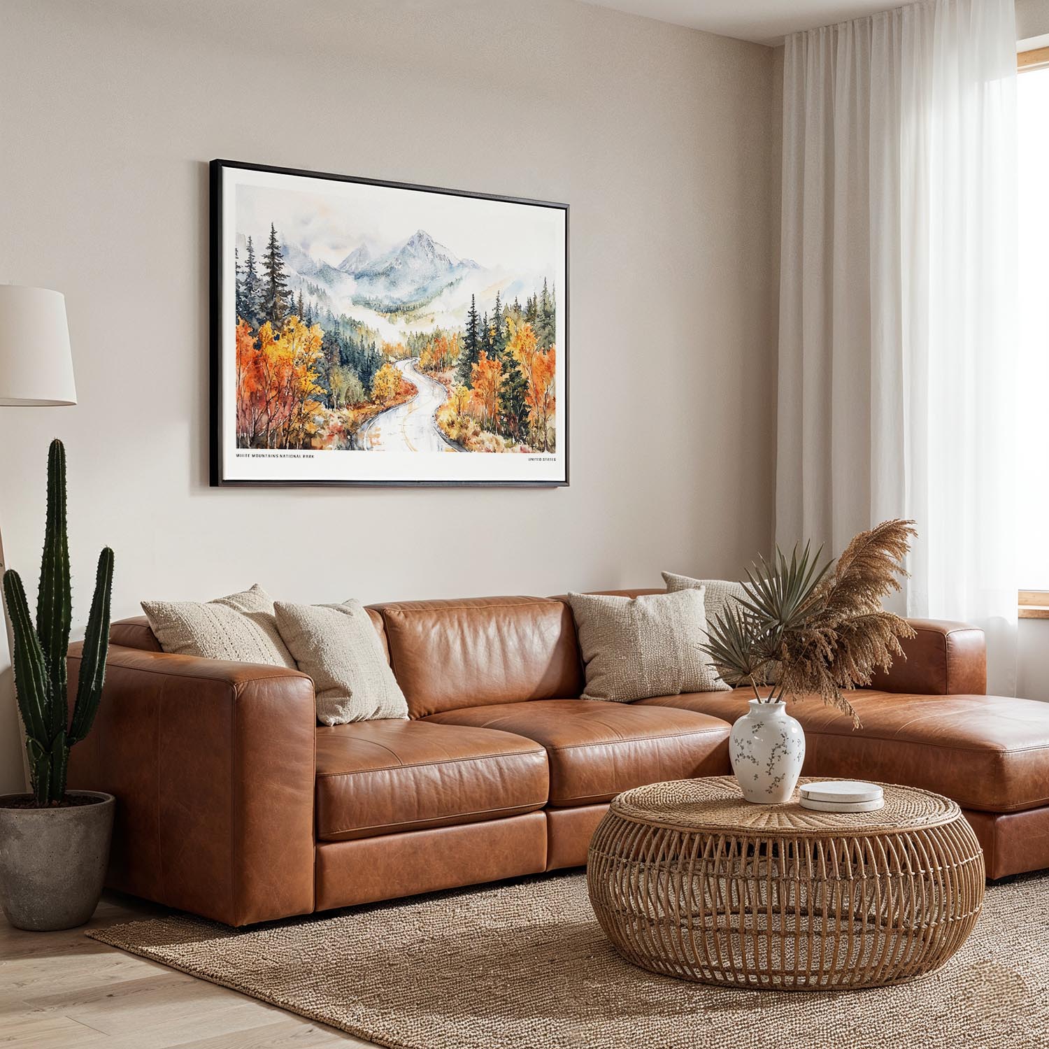 This canvas print captures the tranquil essence of White Mountains National Park, showcasing vibrant autumn foliage and gentle mountain slopes. The warm tones offer a calming presence, enhancing any room’s atmosphere. Crafted on hand-stretched canvas with fade-resistant inks, it’s ready to hang and serve as a beautiful focal point in your home. Perfect for living rooms, bedrooms, or offices, this piece makes a thoughtful gift for nature enthusiasts.