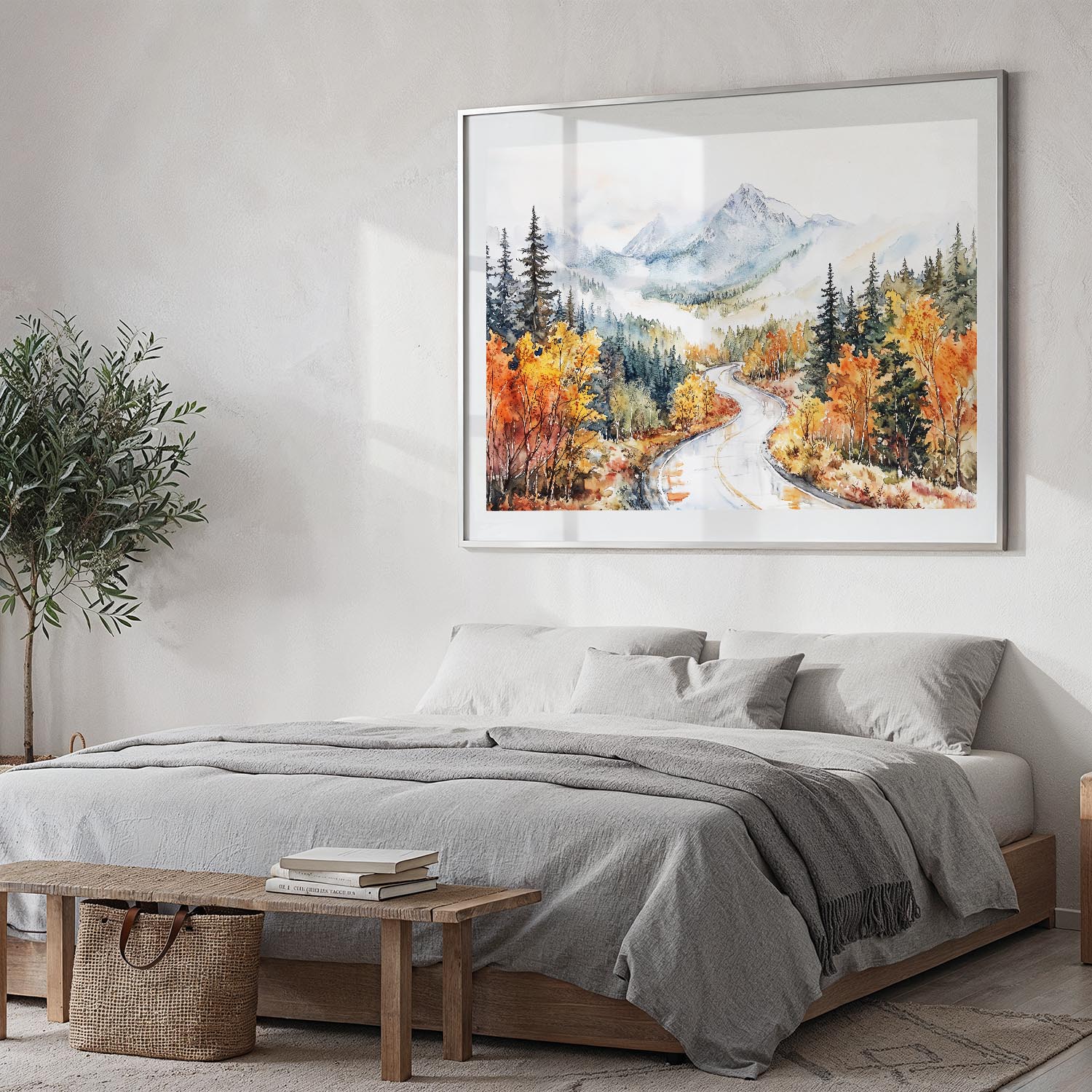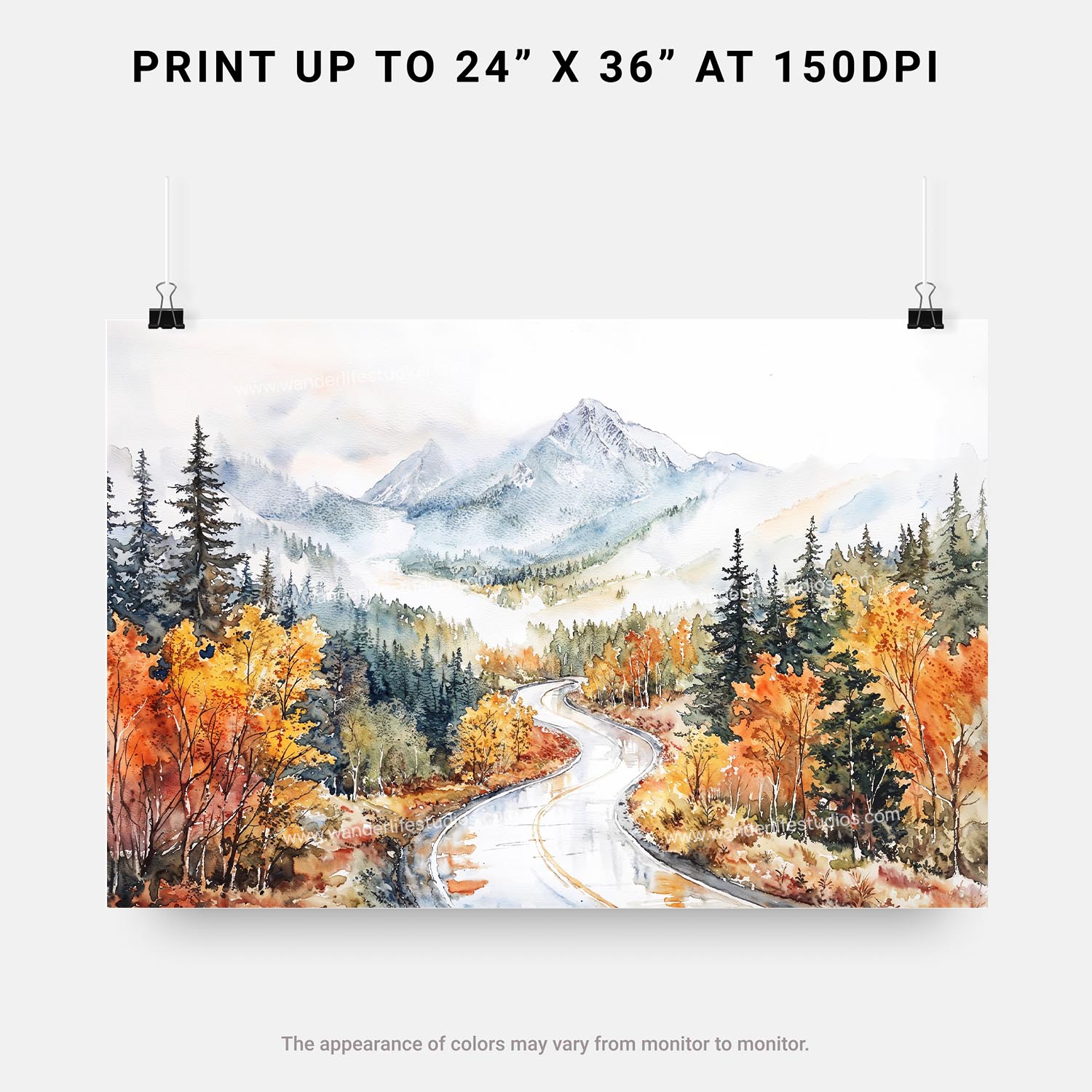 Enhance your space with this digital download wall art featuring the vibrant fall colors of White Mountains National Park. The watercolor style beautifully captures the essence of nature, and you can easily print it at home or through a local shop.