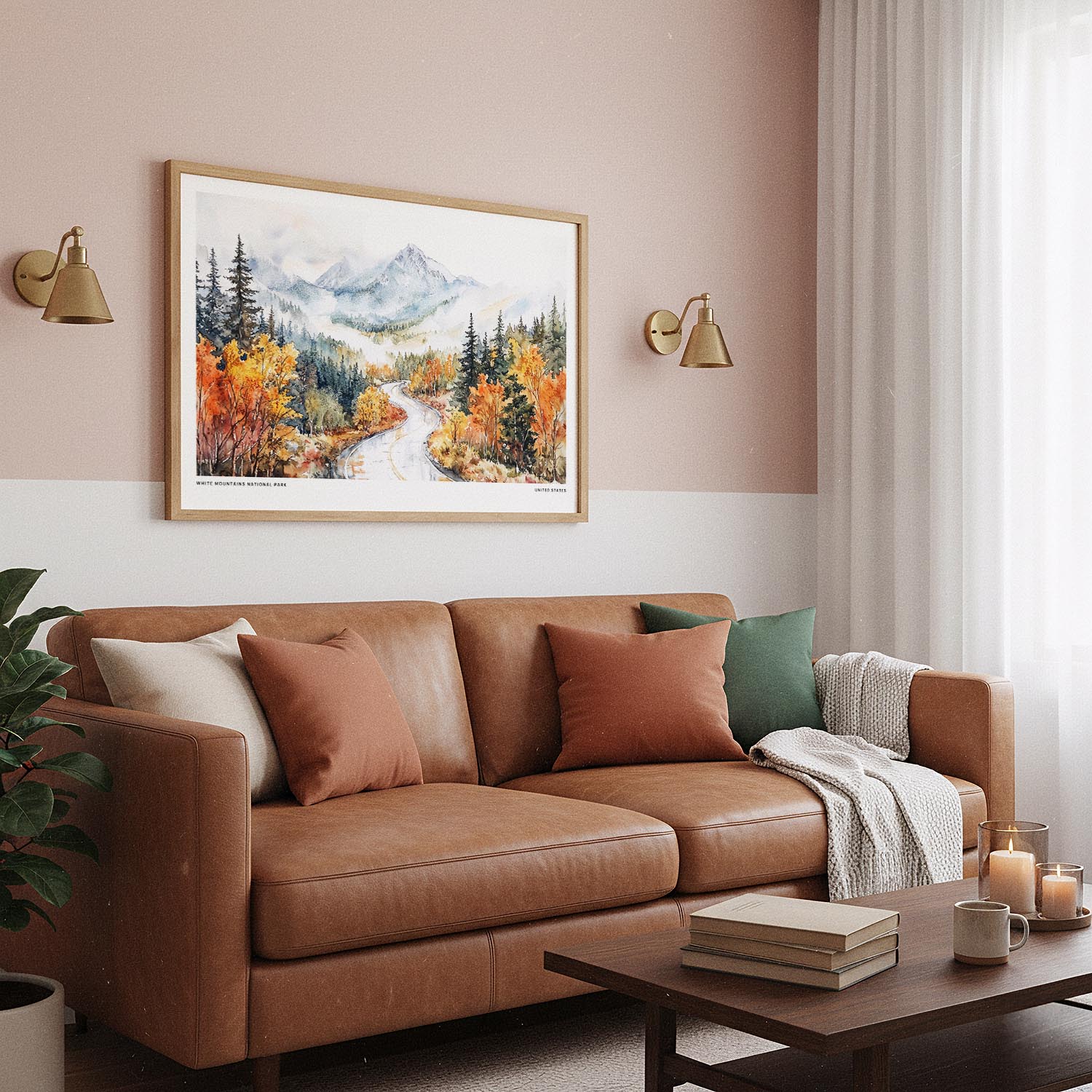 White Mountains National Park Watercolor Art Print – Autumn Landscape Wall Art