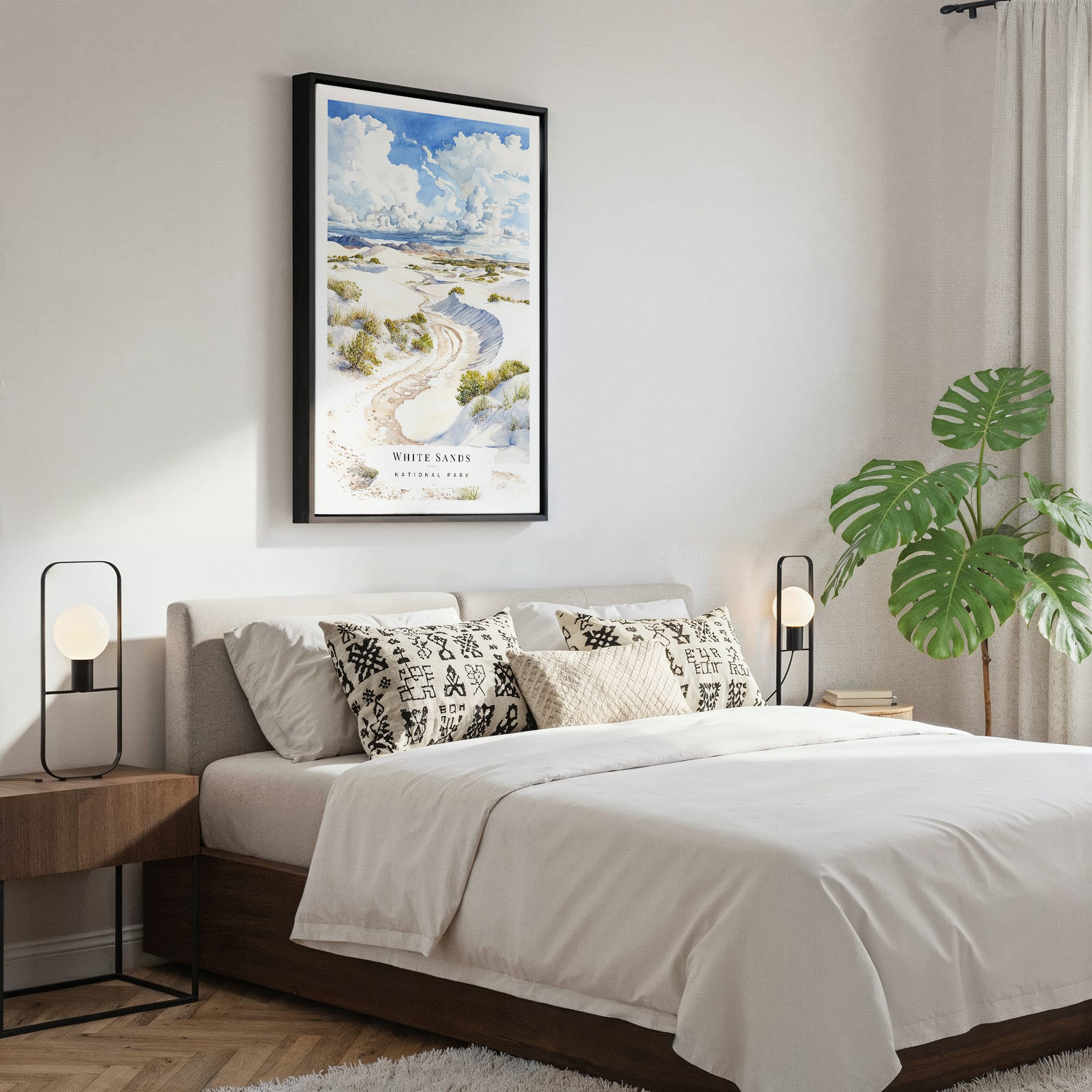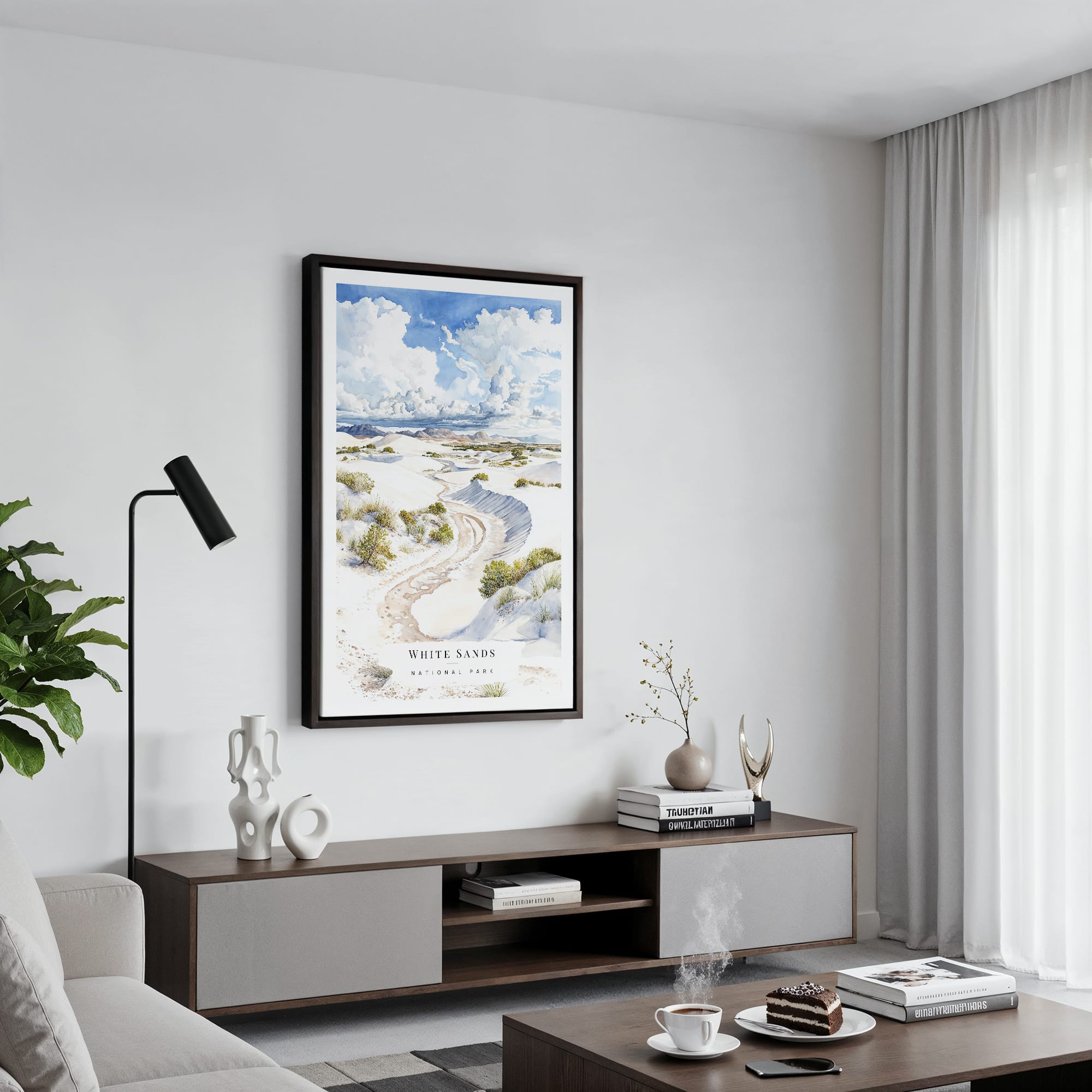 White Sands National Park Watercolor Canvas Print – Scenic Landscape Wall Art