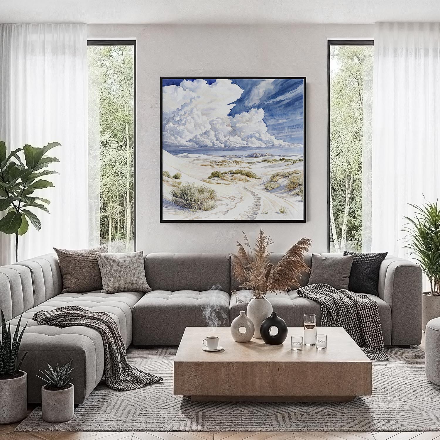 White Sands National Park Watercolor Square Canvas Print | Scenic Desert Landscape Art