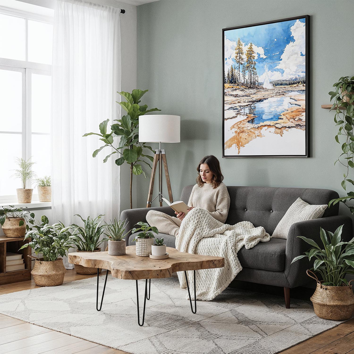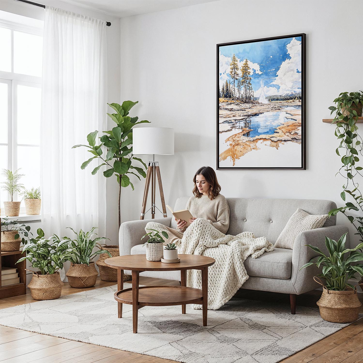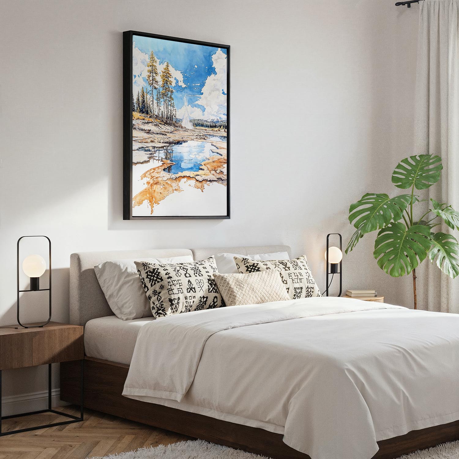 Bring the wonder of Yellowstone’s geysers and serene landscapes into your home with this canvas print. Ready to hang, it’s an appealing addition to any living space, office, or hallway.