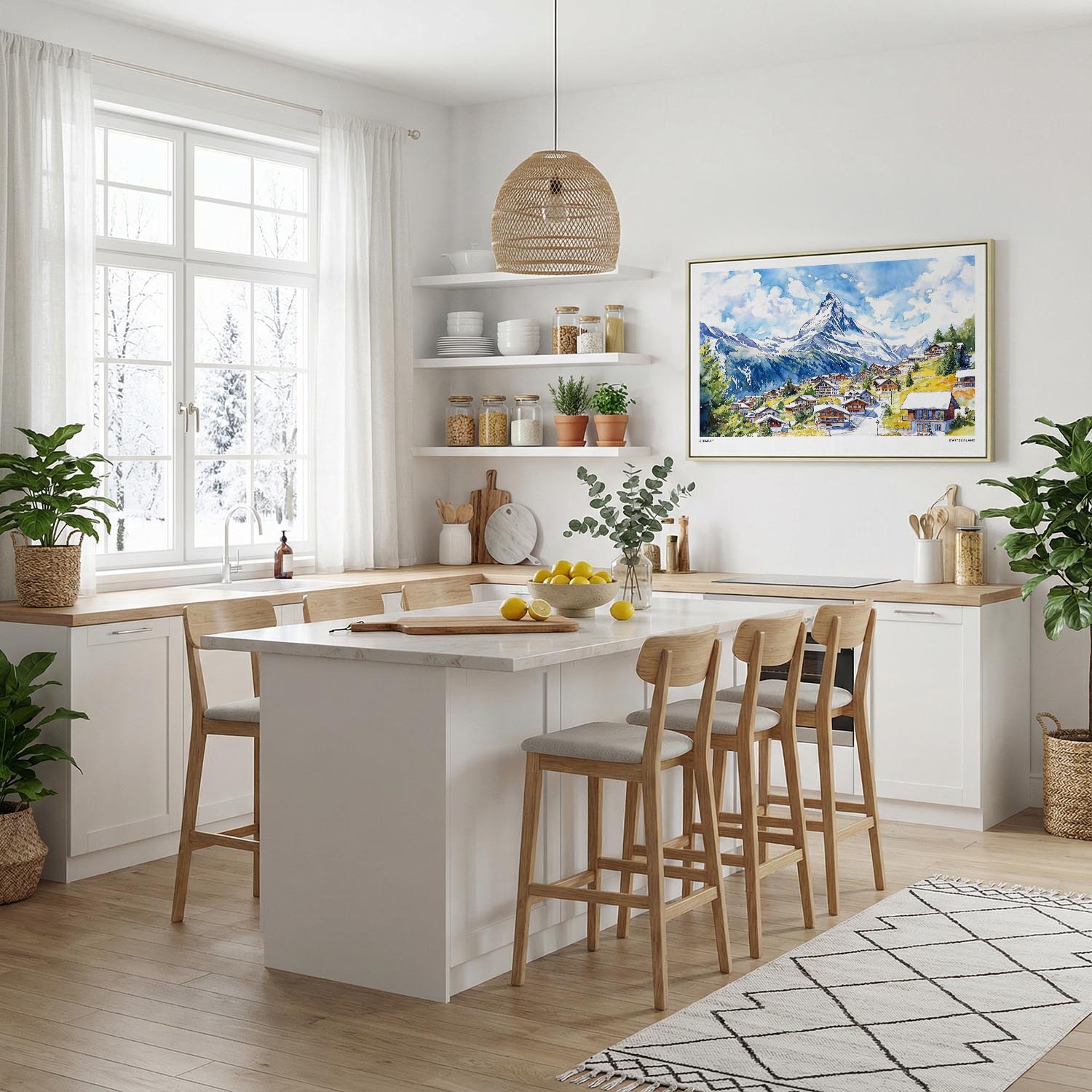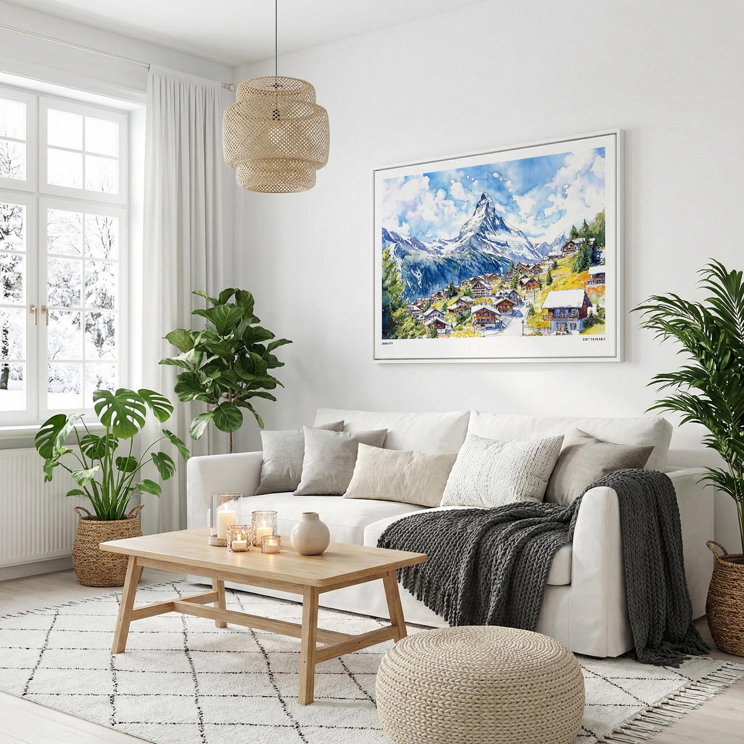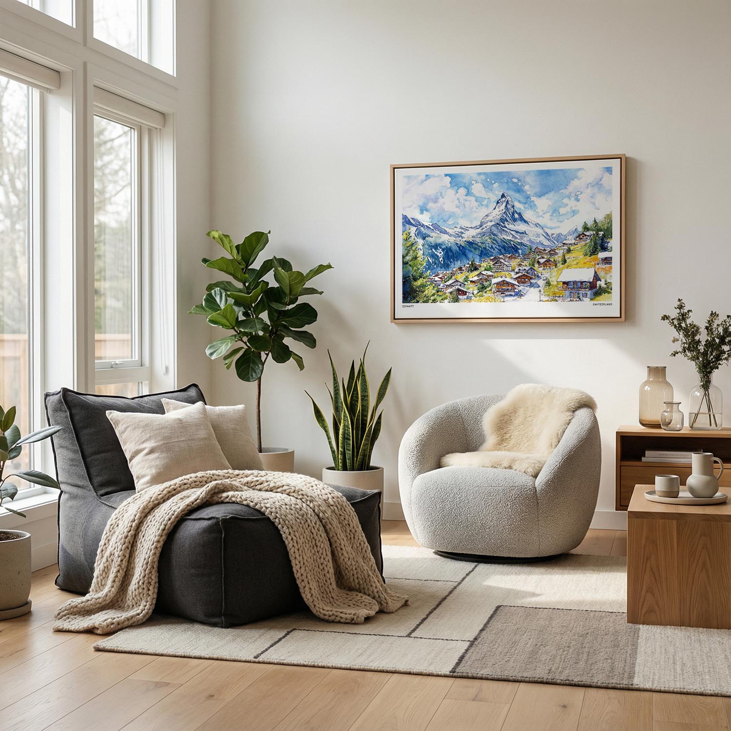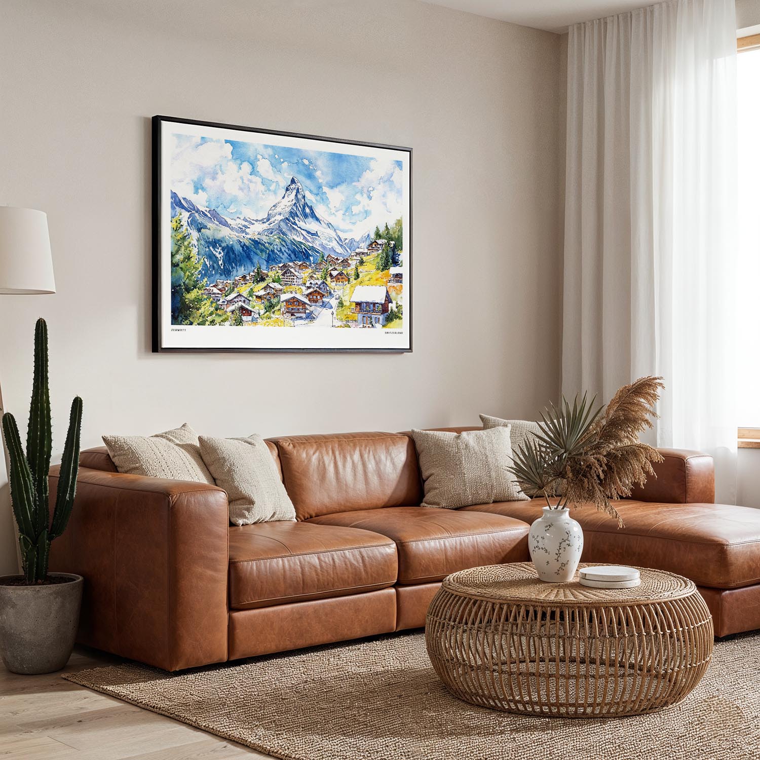Bring the charm of Zermatt into your home with this canvas print. Featuring the picturesque village and majestic Matterhorn, it’s perfect for living rooms, bedrooms, or offices.