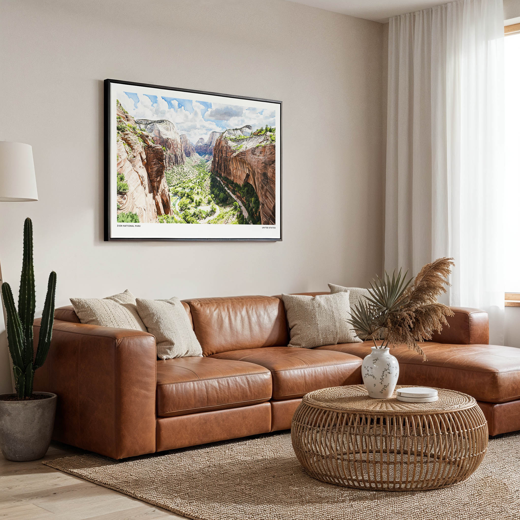 Transform your space with this canvas print of Zion National Park, showcasing its stunning cliffs and lush valleys. It’s ready to hang, making it an easy addition to any living room, bedroom, or office.