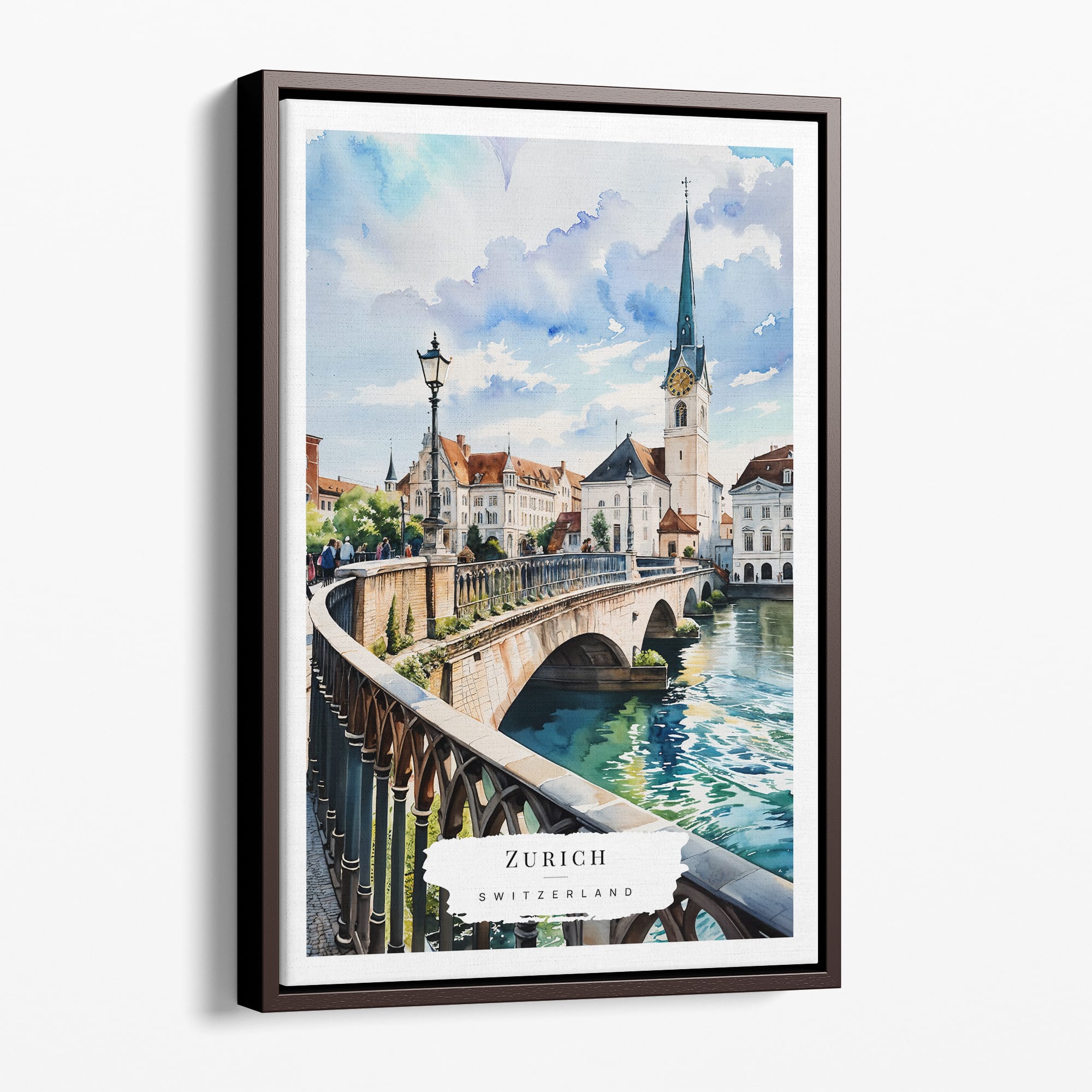 Zurich Switzerland Watercolor Canvas Print – Charming Cityscape Art for Home Decor